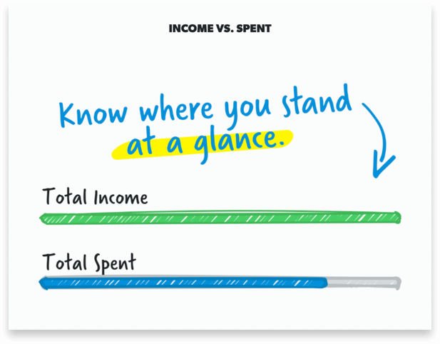 The way to crush any money goal is to live on less than you make. And with the Income vs. Spent section, you can see if you’re spending more or less than you earn each month (the goal is less!).