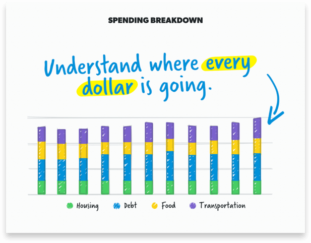 A budgeter favorite, the Spending Breakdown section helps you know where your money is going by giving you a detailed breakdown of your spending from month to month.